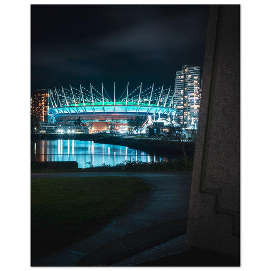 BC Place's Emerald Green & Sky Blue Tones – Nightscape Long Exposure Art Print