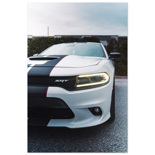 Polar White Dodge Charger SRT – Dynamic Urban Car Art Print